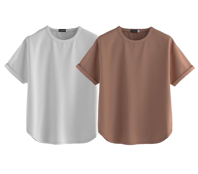 This pack of 2 oversized T-shirts, crafted from soft cotton and cotton-blend fabrics, features half sleeves, a round neck, and a relaxed fit. Breathable, comfortable, and stylish, they’re perfect for casual everyday wear.